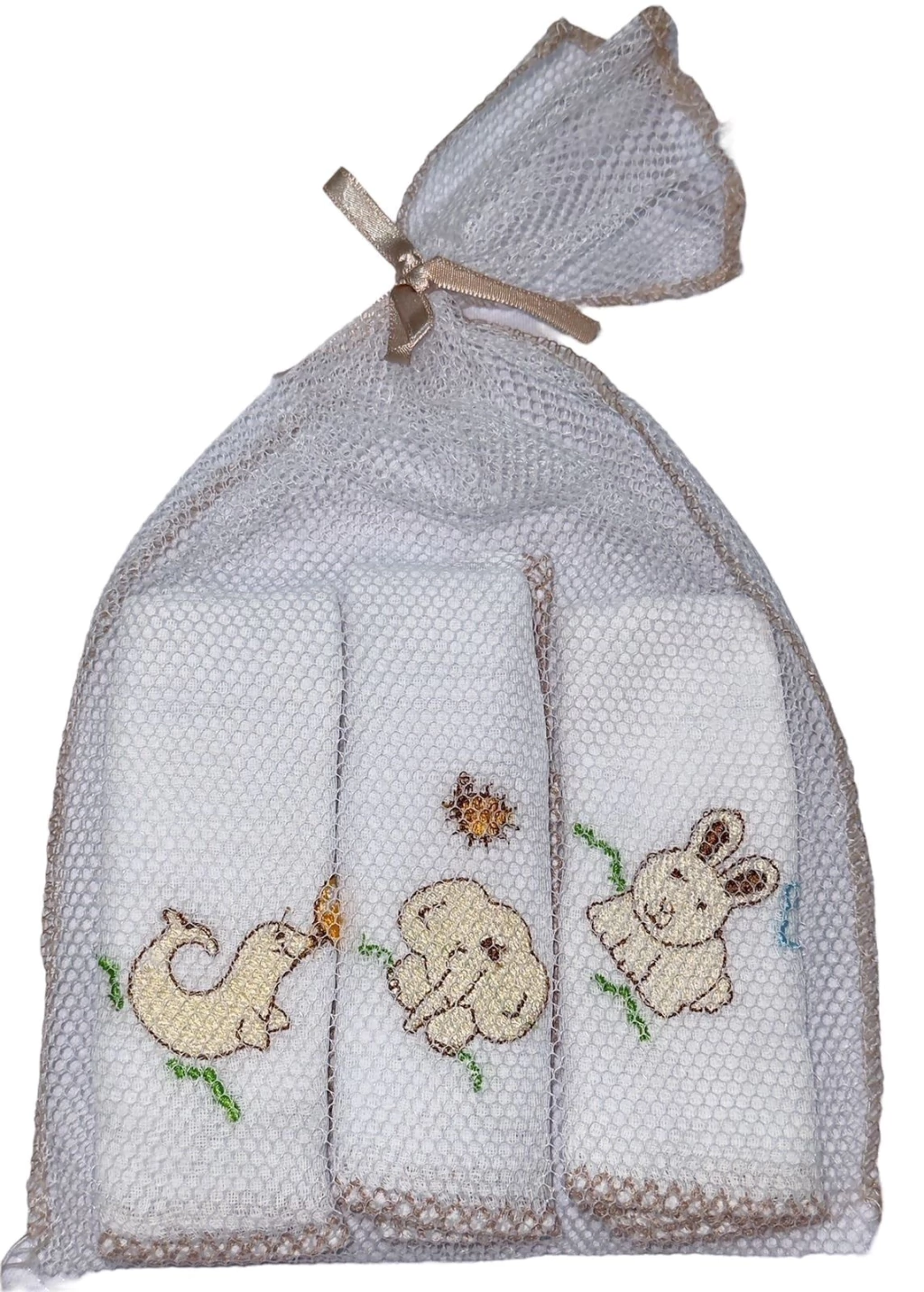 Garanta já seu conjunto de panos de boca bordados com tema de animais e proporcione ao seu bebê conforto, proteção e um toque de fofura em todas as ocasiões!